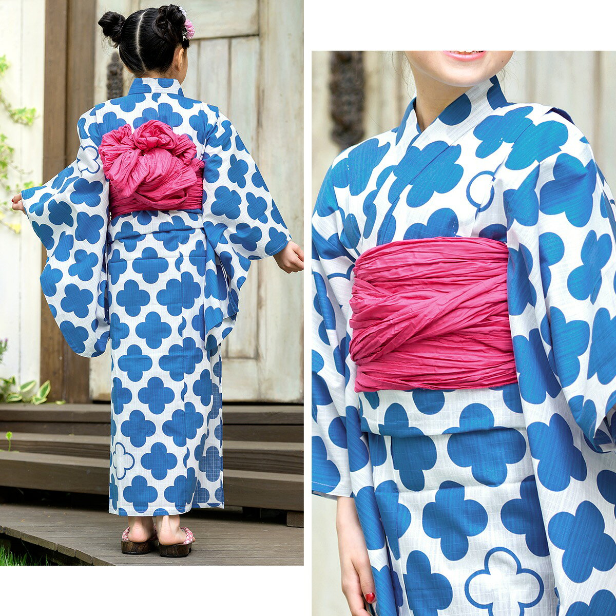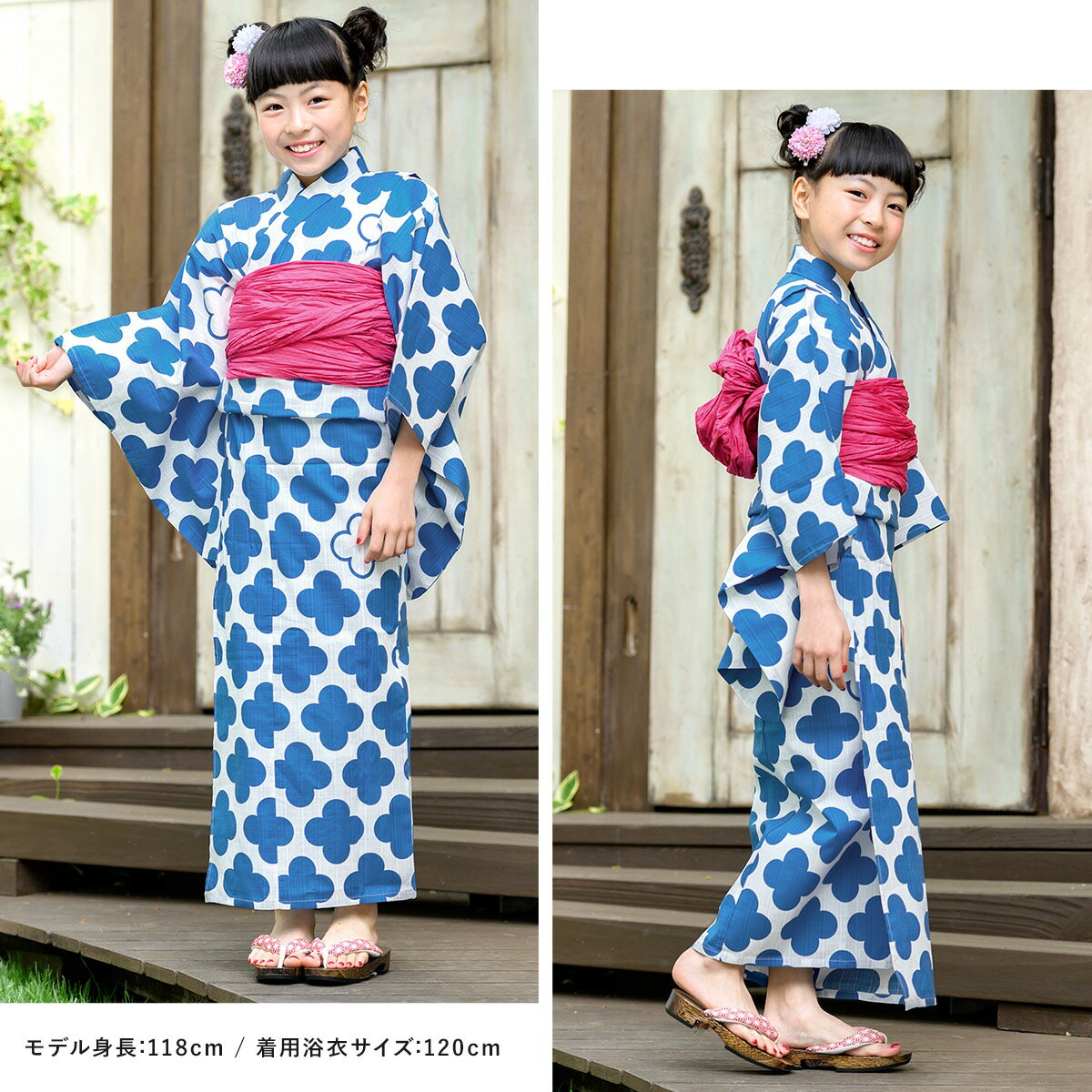 浴衣 子供 セット 女の子 2019 キッズ 女児 白 ホワイト 青 水色 ブルー ピンク 花 シルエット モダン 綿 変わり織り モイカ 夏 【100cm】【110cm】【120cm】【130cm】【送料無料】【あす楽対応】